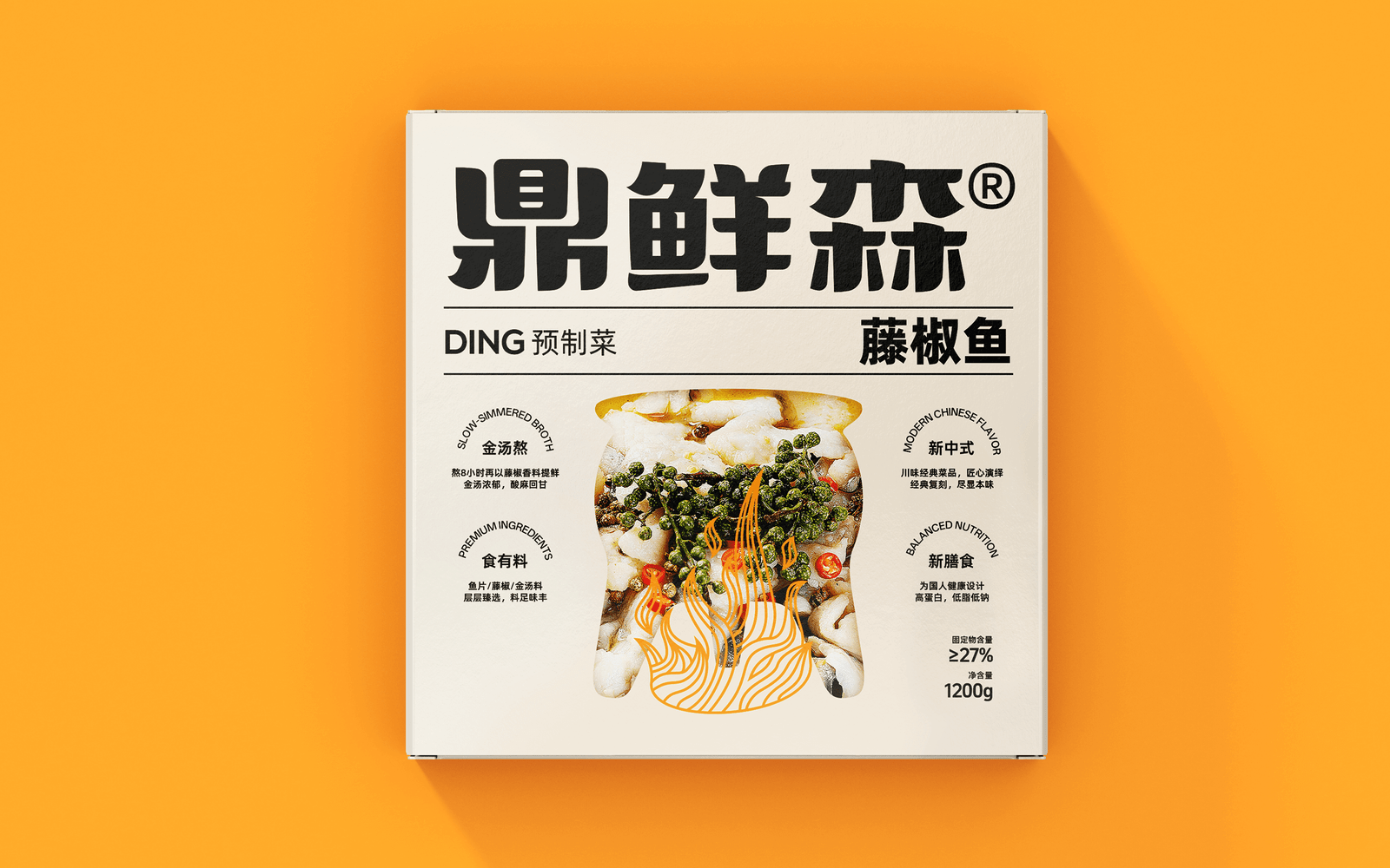 The brand name draws from the form of the ancient Chinese cooking vessel “Ding” and the persona of a gentleman, combining traditional utensils with human character to build a visual identity system rich in cultural depth and emotional appeal.